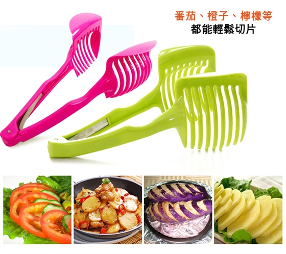 多功能切片器,配合刀子使用可輕鬆將檸檬或各式蔬果切成片狀,也可當夾子使用,夾取生菜沙拉或是取食物都實用!