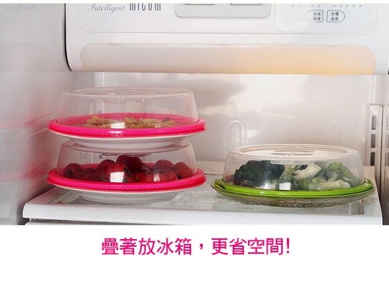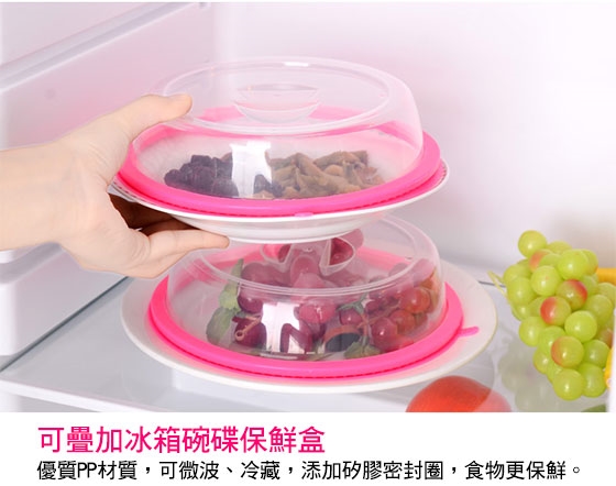 巧思蓋頂平滑設計,可重疊使用,以節省空間,冷藏室適用,蓋於碗盤上,便可重疊,如有剩餘菜餚可加蓋後放入冰箱保鮮,並可上下推疊,更加衛生方便!