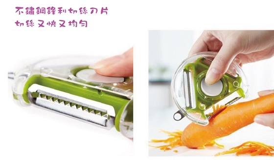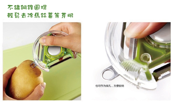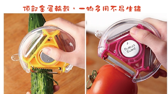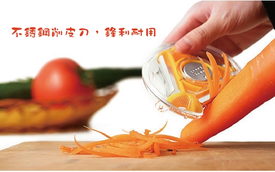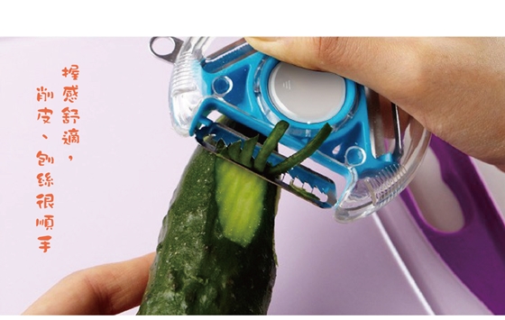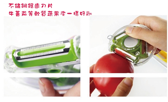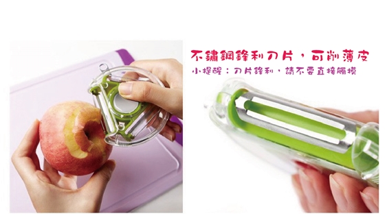 ●三合一削皮刀,安全凹式設計,適用多種蔬果使用