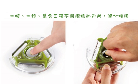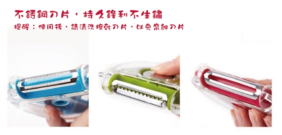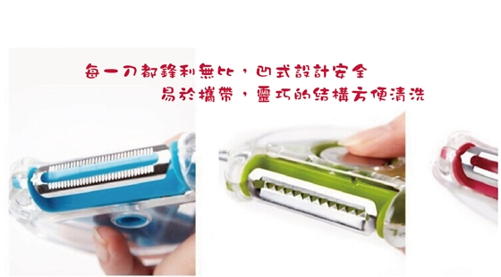 集合三種不同規格的刀片,一物多用不易生鏽,每一刀都鋒利無比,凹式設計安全,易於攜帶,靈巧的結構方便清洗,每一個刀片均含不同的用途,適用於生活上各種蔬果。